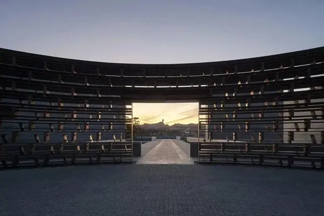 承德博物館因位于古建筑群中,建筑限高7米,因此建造時地基整體下挖了約6米,下沉式庭院如同新的“地面”“藏”在環境之中,庭院邊緣結合當地古建中常見的臺基形式,做了層層跌落的臺地。