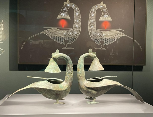 館內展出的羽紋銅鳳燈